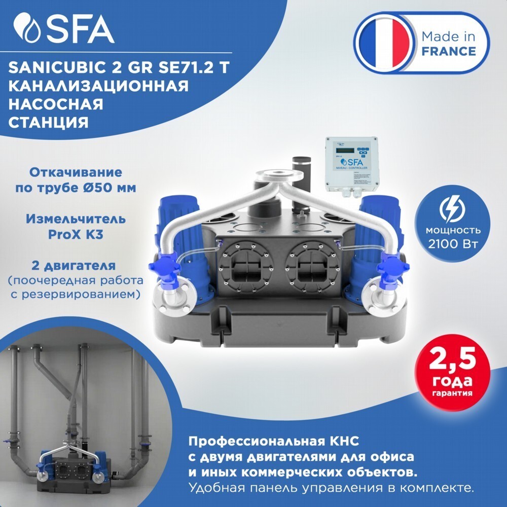 SANICUBIC 2 GR - это подъемная станция с двумя двигателями, сертифицированными по IP68, и двумя насосами с уникальной системой режущих лезвий ProXK3.