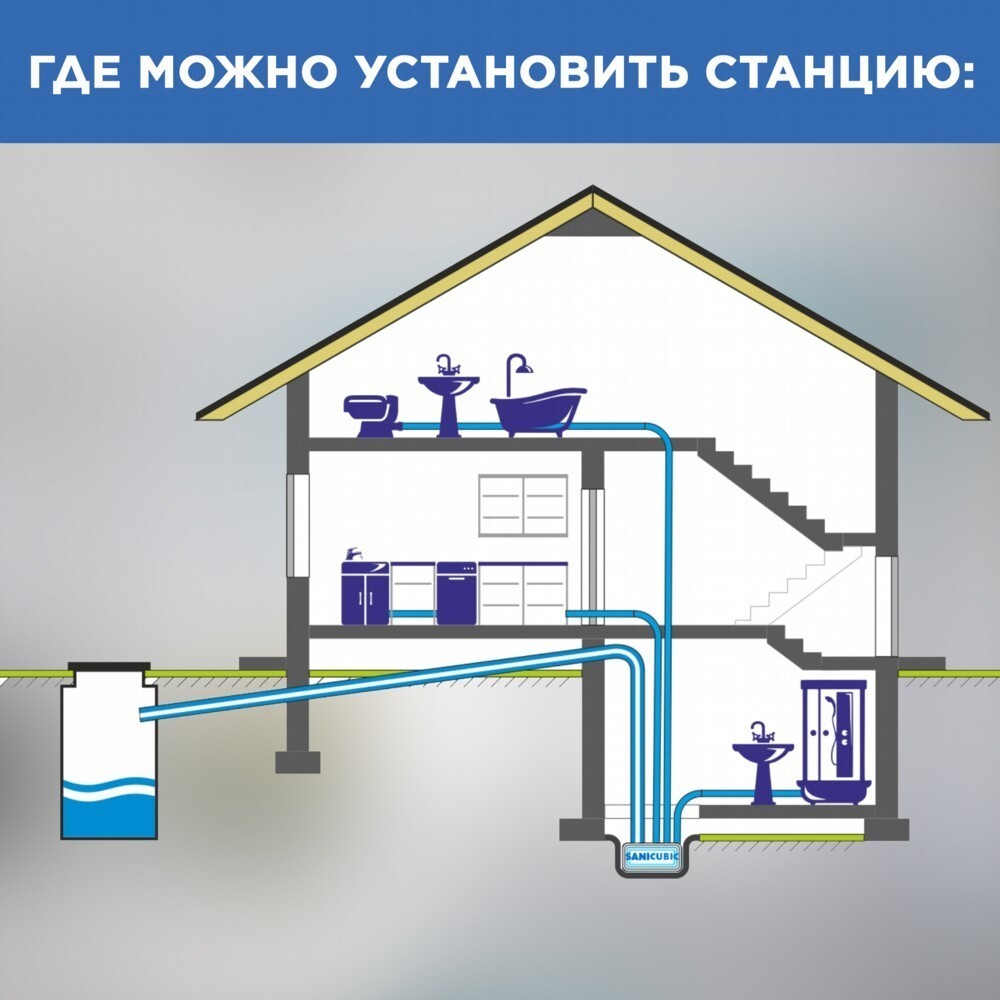 SANICUBIC 2 GR доступна в 4 версиях для разных высот подъема стоков. Модель имеет 5 входов для надежного сбора стоков даже в сложных ситуациях.