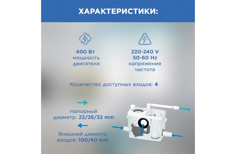 Канализационный насос — это «сердце» модели Saniwall Pro. Он имеет следующие полезные характеристики: