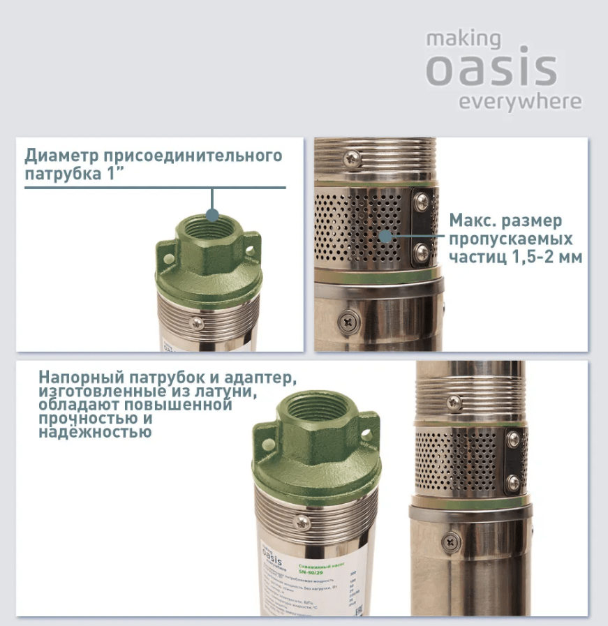 Скважинный погружной насос making Oasis everywhere используется для подачи воды из колодцев, скважин и открытых водоемов в системы водоснабжения частных домов, дач и коттеджей, а также для полива сада и огорода. Насос для воды погружной необходим для непрерывной подачи питьевой или технической воды в загородный дом или сад.