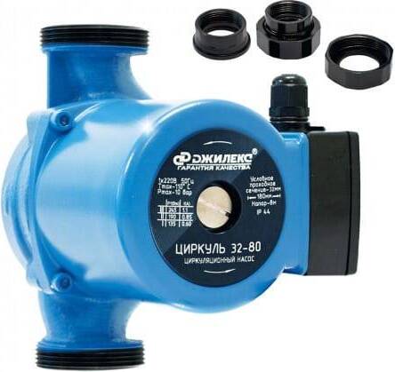 Циркуляционный насос Джилекс Циркуль 32/80 предназначен для циркуляции воды или теплоносителя в системах отопления с присоединительным размером гайки 1 1/4 дюйма (32 мм) и максимальным напором 8 метров (80 дм).