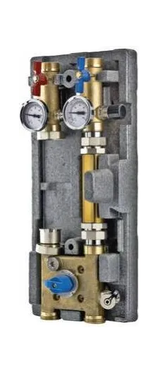 Заданная температура теплоносителя в контуре поддерживается с помощью входящих в состав узла байпаса с балансировочным клапаном и трехходового смесительного клапана.