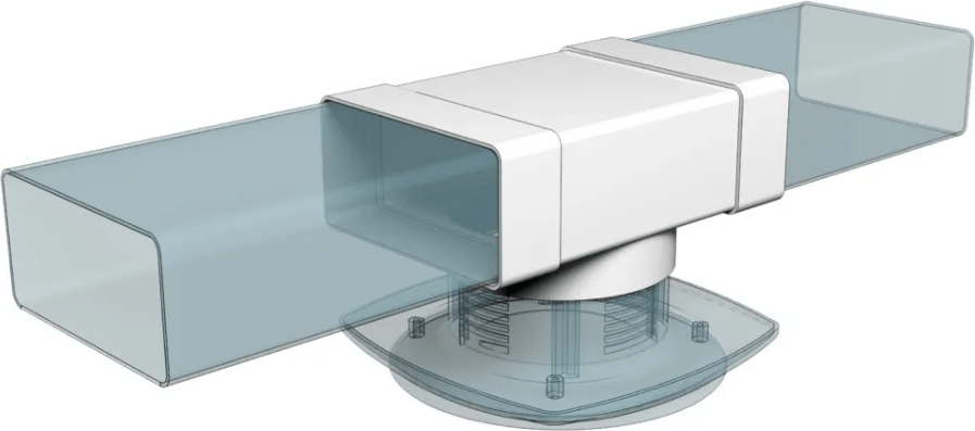 ТФП соединители плоских каналов с выходом на фланец. Соединитель плоских воздуховодов с выходом на фланцевые воздухораспределители. Для соединения двух плоских воздуховодов и устройства с фланцем – анемостата, диффузора, решетки или вентилятора. Монтаж с круглым воздуховодом возможен через соединитель СКП.