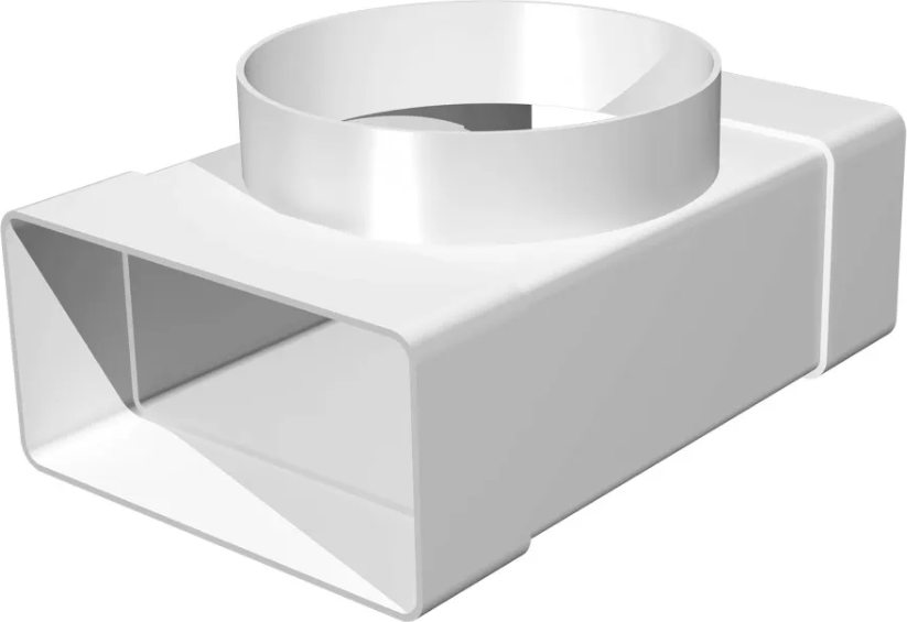 ТФП соединители плоских каналов с выходом на фланец. Соединитель плоских воздуховодов с выходом на фланцевые воздухораспределители. Для соединения двух плоских воздуховодов и устройства с фланцем – анемостата, диффузора, решетки или вентилятора. Монтаж с круглым воздуховодом возможен через соединитель СКП.