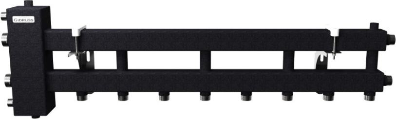 Балансировочный коллектор Gidruss BM-100-5D (до 100 кВт, подкл. котла G 1 1/4, 4+1 контура G 1) совмещает в одной конструкции гидравлический разделитель и распределительный коллектор.