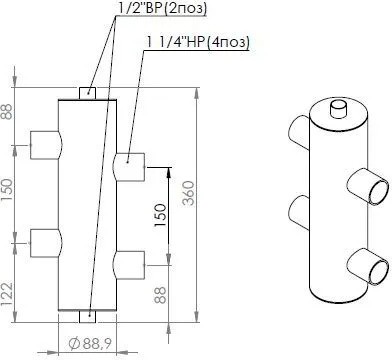 - Смешивание и разделение потоков: Гидрострелка 85 кВт позволяет смешивать горячий и холодный теплоноситель, что обеспечивает оптимальную температуру на выходе.