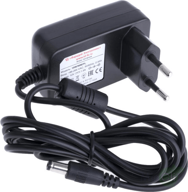 Входное напряжение 100-240 В, выходные параметры — 12В / 1А / 12Вт. Имеет защиту от перегрузок и КЗ.