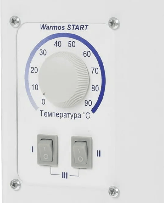 Warmos Start оптимальный вариант для использования в качестве резервного источника тепла при основной работе газового или твердотопливного оборудования. Котел представляет собой моноблок, объединяющий котел и пульт управления в едином корпусе. Требуемая температура теплоносителя в котле устанавливается встроенным термостатом путем плавной регулировки от 30 до 85 градусов.