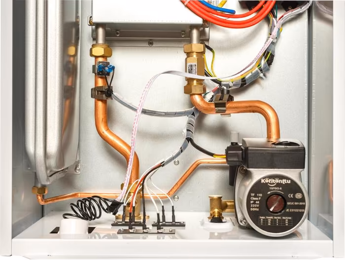 - термостат, насос, манометр давления, расширительный бак, реле протока, предохранительный клапан, датчик температуры