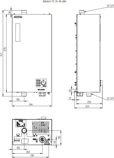 - присоединительные размеры патрубков 1'' (котлы 3-15 кВт), 1 1/4" (котлы 18-36 кВт).