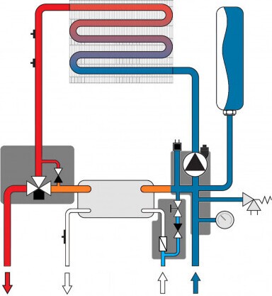 Встроенный байпас контура отопления.