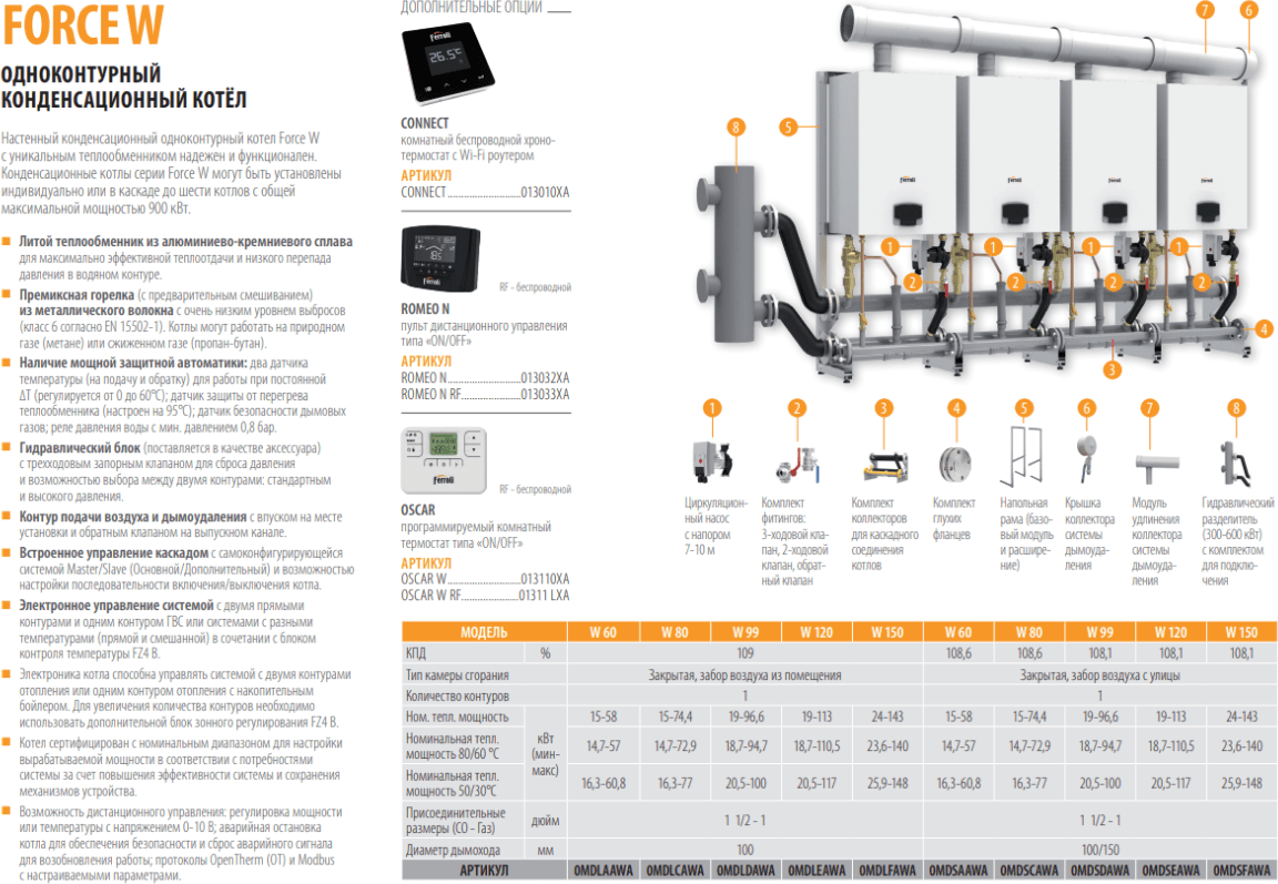 Force W - настенный конденсатный одноконтурный котел с возможностью подключения опционного бойлера ГВС косвенного нагрева.