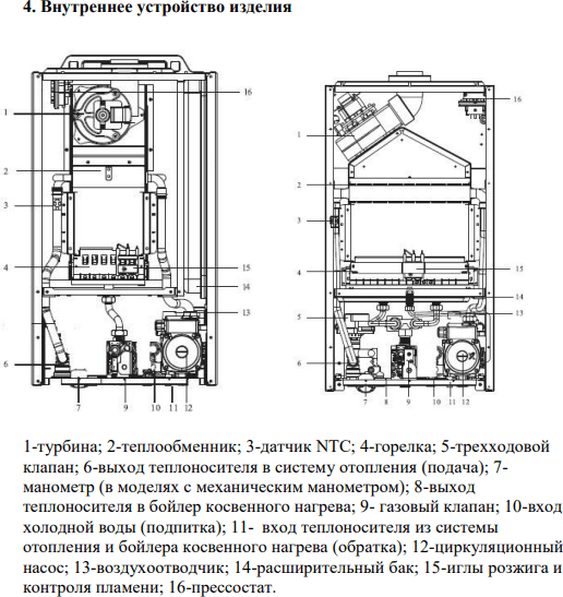 Функция антиблокировки насоса (в режиме ожидания, насос будет работать 1 минуту через каждые 24 часа; если после включения горелки, через 10 секунд нет изменения температуры отопительной воды, котел остановит работу )