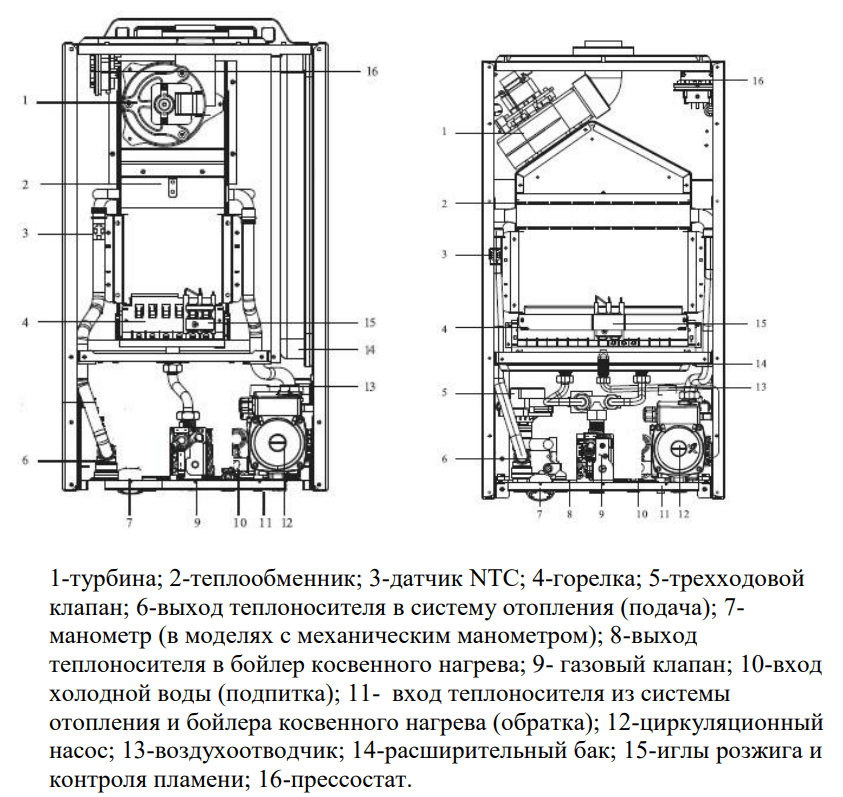 Функция антиблокировки насоса (в режиме ожидания, насос будет работать 1 минуту через каждые 24 часа; если после включения горелки, через 10 секунд нет изменения температуры отопительной воды, котел остановит работу )