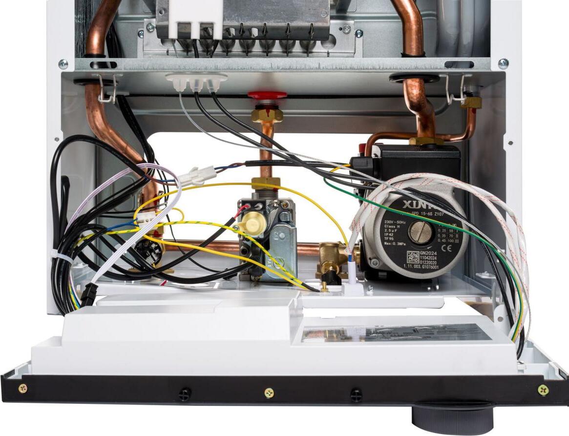 - контроль пламени, датчик низкого давления теплоносителя, модуляция пламени