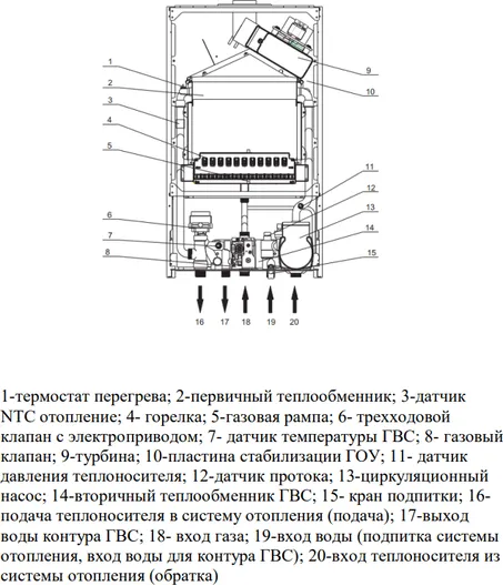 - Газовый котел - 1 шт. Инструкция - 1 шт.