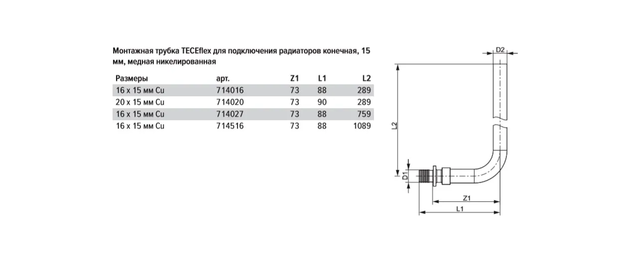 Монтажная труба для радиатора Tece 714016 16 мм, 300мм конечная