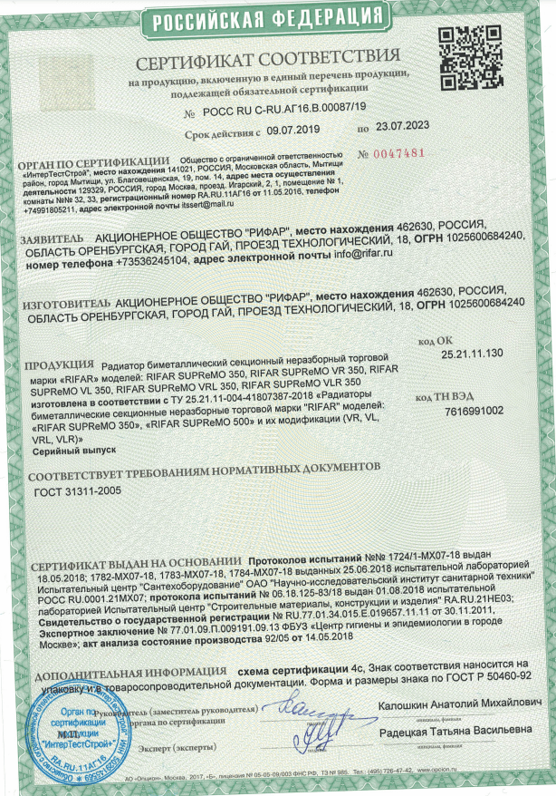 заложена в запатентованной конструкции радиатора. Это – неразборная монолитная конструкция из стальных труб с толщиной стенки как у водопроводных труб, соединенных контактно-стыковой сваркой. В радиаторе модели SUPReMO отсутствуют ниппельные соединения. Благодаря этому в радиаторе SUPReMO в принципе отсутствуют участки, потенциально опасные для возникновения протечек. Двухтрубный вертикальный канал позволяет улучшить циркуляцию теплоносителя и повысить эффективность теплоотдачи. При производстве радиаторов компания РИФАР использует стальные трубы собственного изготовления из качественной конструкционной стали, обеспечивающие высокую коррозионную стойкость выпускаемых приборов и их высокие эксплуатационные характеристики.