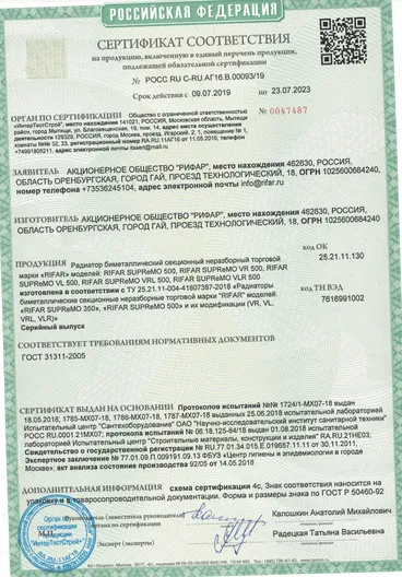 заложена в запатентованной конструкции радиатора. Это – неразборная монолитная конструкция из стальных труб с толщиной стенки как у водопроводных труб, соединенных контактно-стыковой сваркой. В радиаторе модели SUPReMO отсутствуют ниппельные соединения. Благодаря этому в радиаторе SUPReMO в принципе отсутствуют участки, потенциально опасные для возникновения протечек. Двухтрубный вертикальный канал позволяет улучшить циркуляцию теплоносителя и повысить эффективность теплоотдачи. При производстве радиаторов компания РИФАР использует стальные трубы собственного изготовления из качественной конструкционной стали, обеспечивающие высокую коррозионную стойкость выпускаемых приборов и их высокие эксплуатационные характеристики.