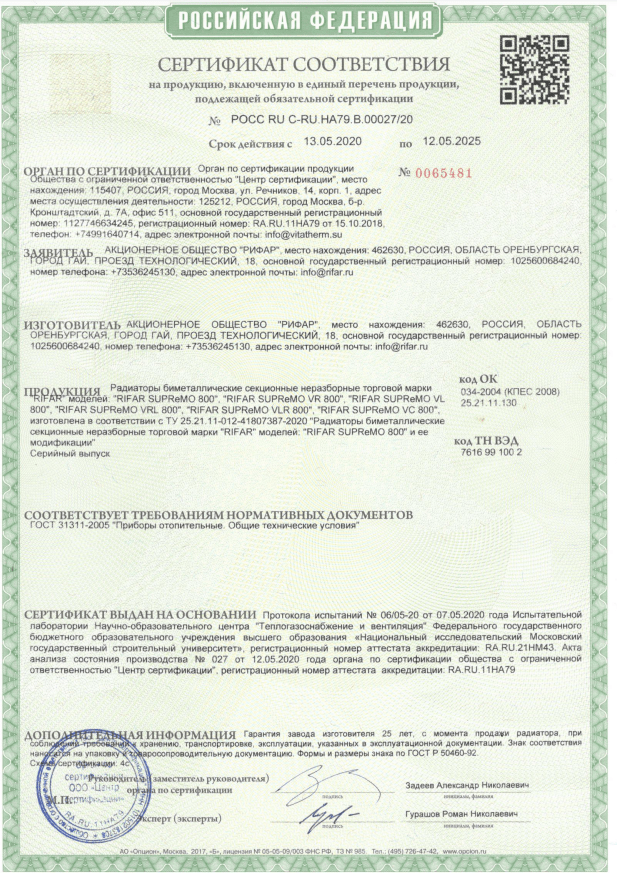 заложена в запатентованной конструкции радиатора. Это – неразборная монолитная конструкция из стальных труб с толщиной стенки как у водопроводных труб, соединенных контактно-стыковой сваркой. В радиаторе модели SUPReMO отсутствуют ниппельные соединения. Благодаря этому в радиаторе SUPReMO в принципе отсутствуют участки, потенциально опасные для возникновения протечек. Двухтрубный вертикальный канал позволяет улучшить циркуляцию теплоносителя и повысить эффективность теплоотдачи. При производстве радиаторов компания РИФАР использует стальные трубы собственного изготовления из качественной конструкционной стали, обеспечивающие высокую коррозионную стойкость выпускаемых приборов и их высокие эксплуатационные характеристики.