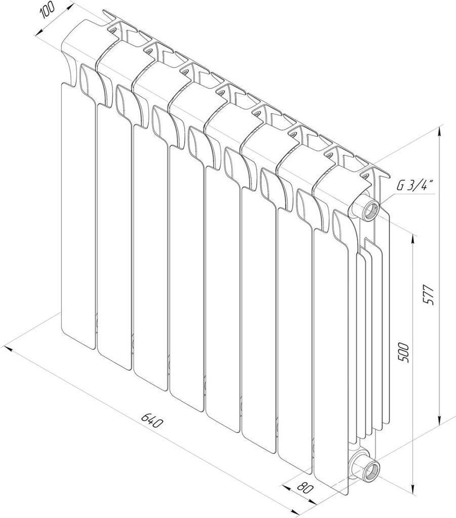 Легкость монтажа. Нет необходимости установки переходников с левой и правой резьбой. Стандартные резьбовые соединения G1/2” или G3/4” являются неотъемлемой частью конструкции радиатора.