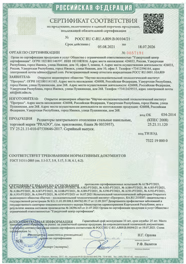 Панельные радиаторы с конвекционными элементами, боковые поверхности закрыты защитными элементами, верхняя поверхность закрыта планкой типа "гриль". Четыре боковые подсоединительные отверстия в каждом углу радиатора с внутренней резьбой G1/2. Назначение - для систем отопления жилых, общественных и промышленных зданий. Максимальное рабочее избыточное давление теплоносителя - 0,9 МПа. Максимальная температура теплоносителя - 120 С. Гарантия 10 лет.