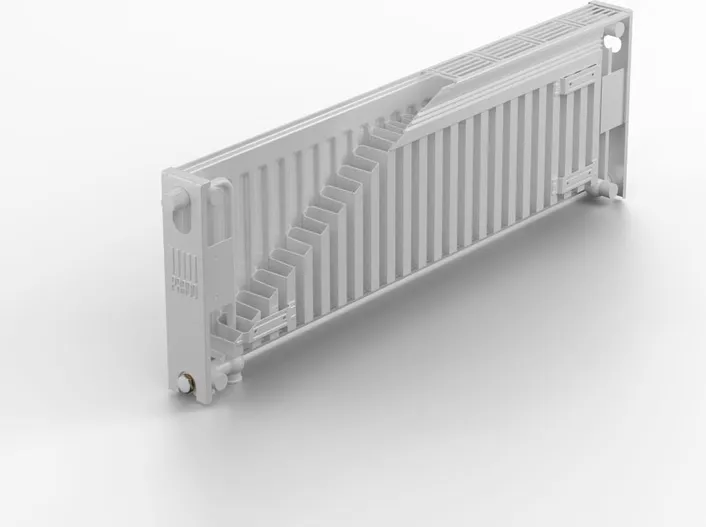 Панельные радиаторы с конвекционными элементами, боковые поверхности закрыты защитными элементами, верхняя поверхность закрыта планкой типа "гриль". Нижняя подводка с внутренней резьбой G1/2. Назначение - для систем отопления жилых, общественных и промышленных зданий. Максимальное рабочее избыточное давление теплоносителя - 0,9 МПа. Максимальная температура теплоносителя - 120 С. Гарантия 10 лет.