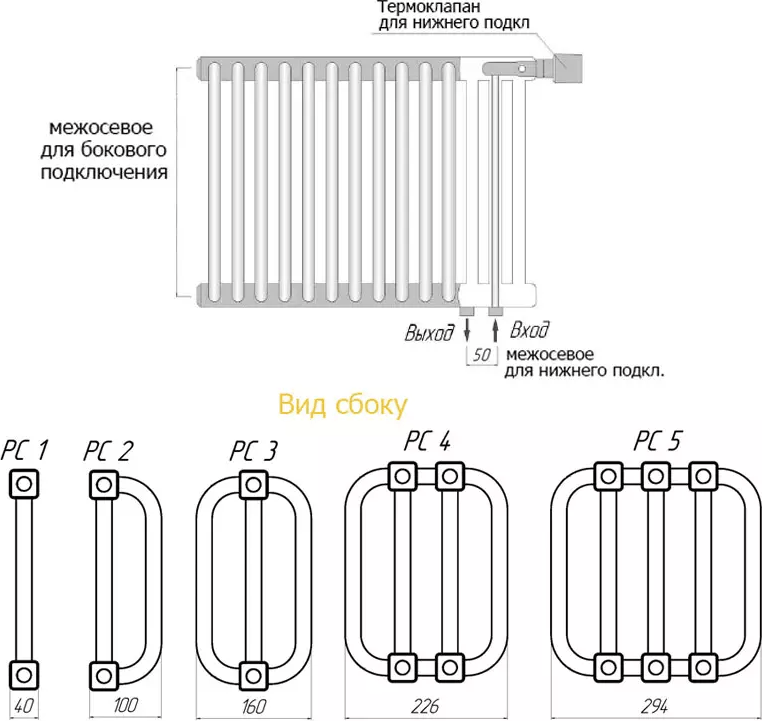 Стальной радиатор KZTO РС 2-500-8 секций, нижнее правое подключение RAL 9016 ½