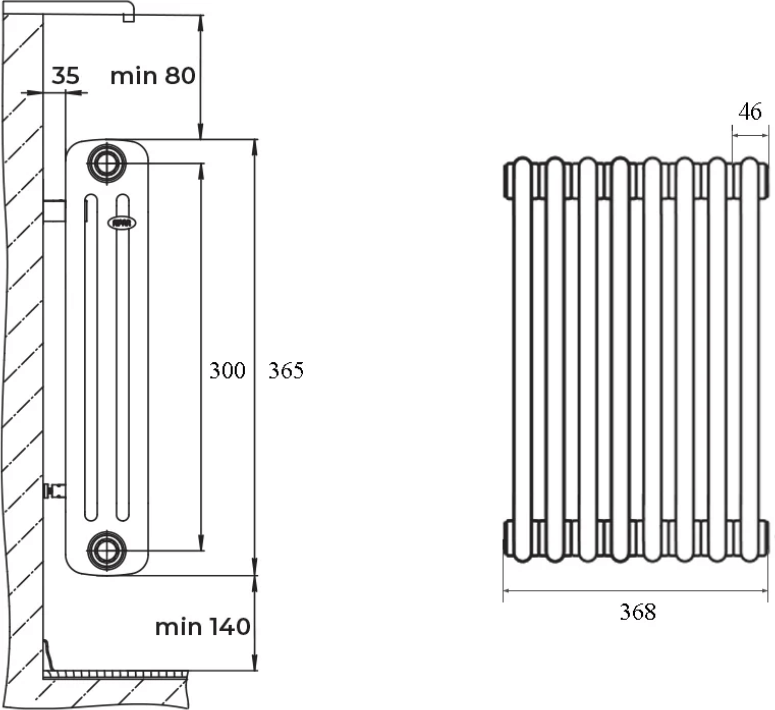 Радиатор стальной Rifar Tubog 365 8 секций, антрацит матовый УТ-00142063