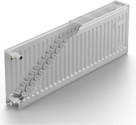 Панельные радиаторы с конвекционными элементами, боковые поверхности закрыты защитными элементами, верхняя поверхность закрыта планкой типа "гриль". Четыре боковые подсоединительные отверстия в каждом углу радиатора с внутренней резьбой G1/2. Назначение - для систем отопления жилых, общественных и промышленных зданий. Максимальное рабочее избыточное давление теплоносителя - 0,9 МПа. Максимальная температура теплоносителя - 120 С. Гарантия 10 лет.