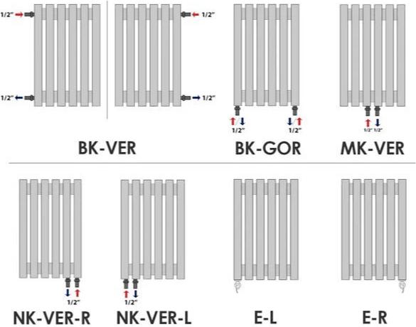 Трубчатый радиатор Guardo Retta 6P с прямоугольным профилем 60x30 10 секций, нижнее левое подключение