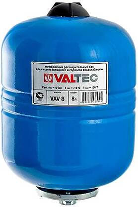 Мембранные баки VALTEC VT.AV.B предназначены для систем холодного водоснабжения, в том числе – питьевого, с рабочим давлением до 10 бар.
