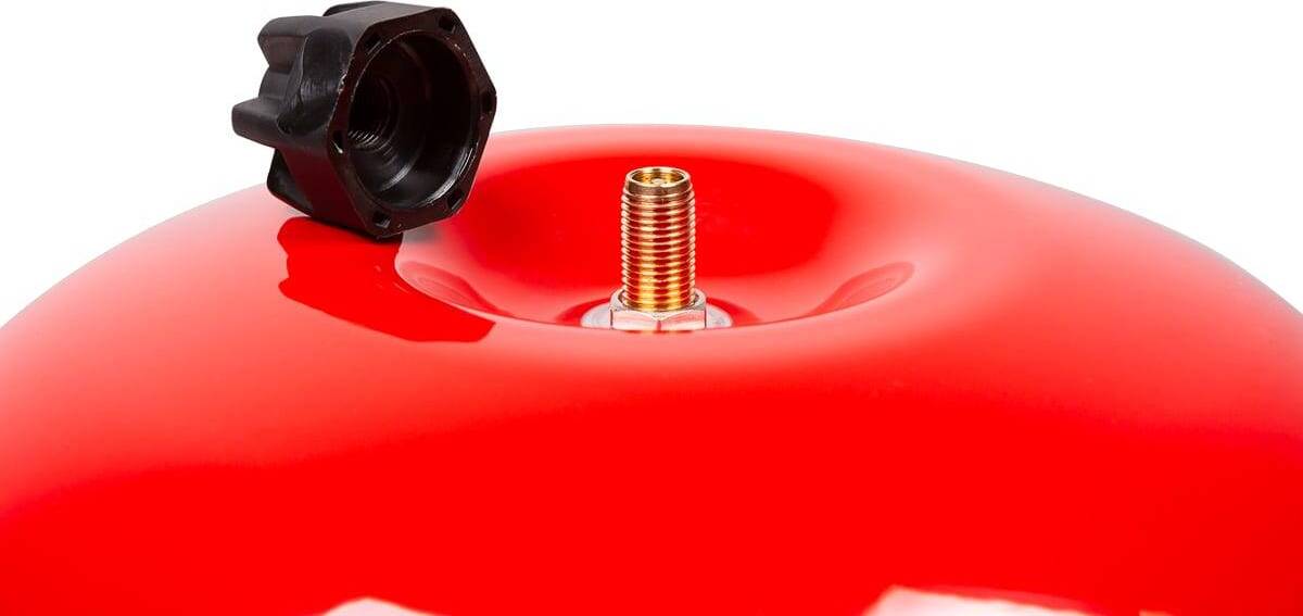 Выдерживает температуру теплоносителя от -10°С до +120°С. Корпус изготовлен из высококачественной стали - 1 мм, покрытой порошковой краской - 120 мкр, устойчивой к истиранию и ультрафиолетовому излучению. Эластичная мембрана изготовлена из EPDM (этилен- пропилен-диен-мономер). Мембраны имеют ступенчатую расширяющуюся форму, которая полностью предотвращает их контакт с корпусом бака. Бак исключает контакт теплоносителя с воздухом. Снабжен воздушным клапаном (ниппелем) с пластиковым колпачком, для контроля и изменения давления.
