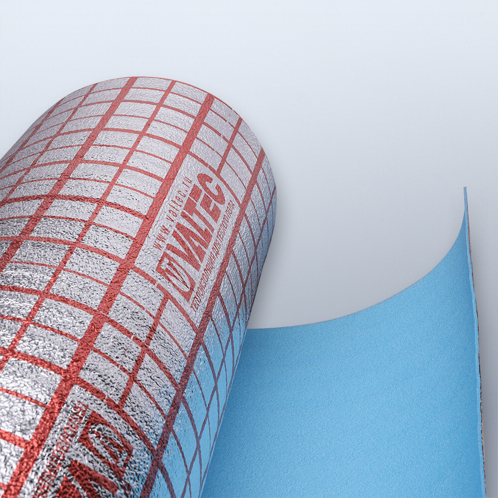 (VT.HS.FP) Комбинированный рулонный материал VALTEC производится из вспененного полиэтилена, являющегося эффективным тепло-, звукоизолирующим материалом, слабогорючим, влагостойким, устойчивым к воздействию строительных смесей, экологически чистым. 3-милиметровый пенополизтиленовый слой покрыт металлизированной пленкой, способствующей снижению теплопотерь, равномерному распределению тепла, играющей роль гидроизоляции. Основной вид применения продукта – подложка под теплый пол. Нанесенная на мультифольгу клеточная разметка облегчает раскладку нагревательной трубы. Подложка используется для устройства напольного отопления утепленных помещений (малая толщина материала является преимуществом, обеспечивающим экономию внутреннего пространства) или в качестве дополнительной теплоизоляции. Материал поставляется рулонами по 30 кв. м (1,2х25 м).