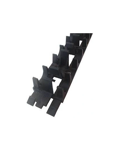 Шина фиксирующая для труб теплого пола диаметром 16 и 20 мм. Представляет собой пластиковый трак длиной 0,5 м, который можно крепить как к теплоизолирующей основе – якорными скобами, так и к бетонному основанию – с помощью дюбелей. С обоих торцов изделия предусмотрены замки для крепления траков между собой. Ширина и высота шины – 40 и 32 мм соответственно. Минимальный шаг укладки трубы – 50 мм. Поставляется в упаковках по 20 шт. (10 м).