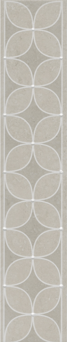 В серии «Туф» для стен предлагается базовая плитка 20×30 см и плитка с геометрическим узором, составленным из пересекающихся окружностей, в качестве компаньона — глянцевый мозаичный декор. В серию также входит напольный керамический гранит 40×40 см: базовый и с геометрическим узором. Возможности напольной укладки керамического гранита дополняет бордюр 40,2×7,7 см и вставка 7,7×7,7 см. Вся плитка исполнена в одном цвете на блестящей глазури. Текстура напоминает седоватый травертин — разновидность туфа, который украсит пространство нотками роскоши.