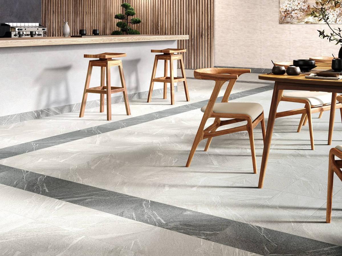 В этой серии керамического гранита передана необработанная поверхность камня «Неро Бореале». Выразительная структура дополнена естественной зернистой поверхностью и лёгкими прожилками, характерными для природного материала. Декоративные элементы с актуальным геометрическим орнаментом сочетают в себе разные оттенки и будут отлично смотреться с базовой плиткой любого цвета.