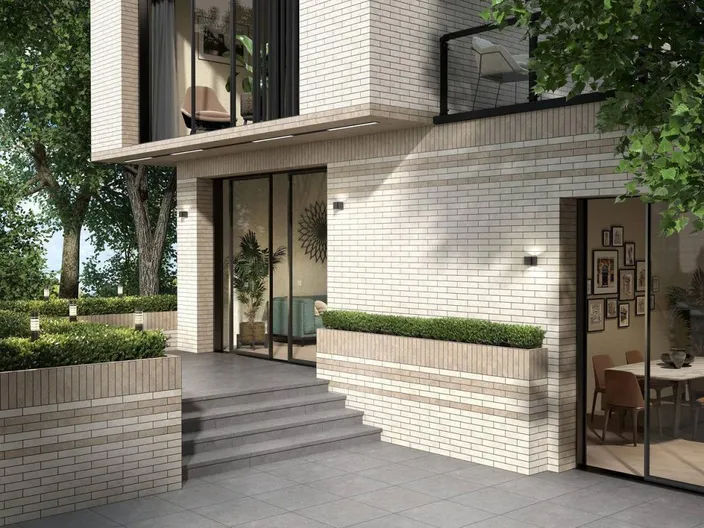 Этот керамический кирпич выглядит рукотворным: его форма с едва неровными краями и живые оттенки получены на современной линии — но с тёплым ощущением штучного производства. Декоры несут ту же эстетику и дополнительно украшены классическими орнаментами, выполненными с небольшим рельефом.