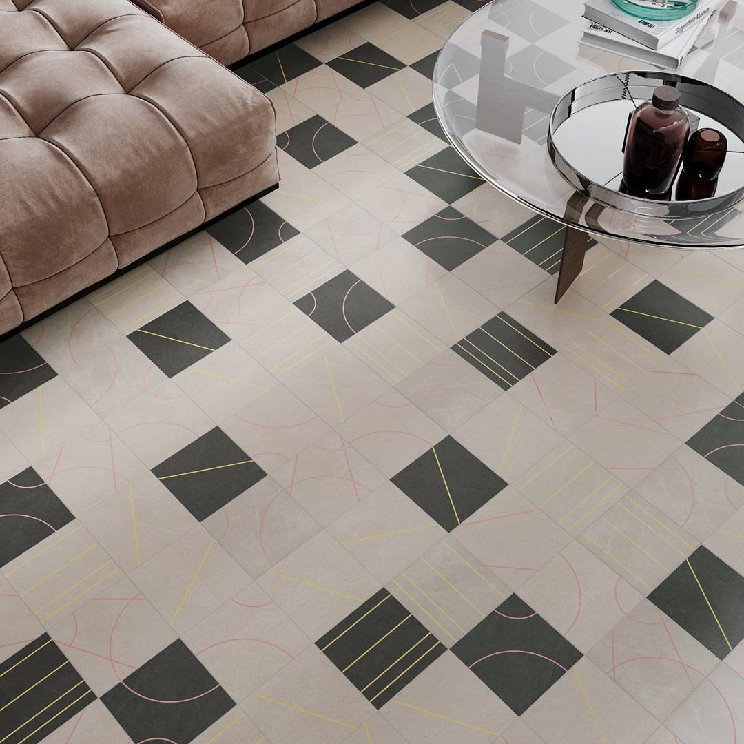 Серия, вдохновленная эстетикой камня и работами миланского архитектора и дизайнера Джо Понти, сделает интерьер по-настоящему актуальным благодаря разнообразию декоров. Для каждого цвета фона предусмотрены пять различных декоров, выполненных в натуральных оттенках и украшенных металлизированным составом. Три дополнительных элемента — два орнаментальных и один геометрический — подойдут к любому цвету базовой плитки. Набор простых, но стильных геометрических декоров с блестящими рельефными линиями желтого или розового цвета станет современным украшением композиции.