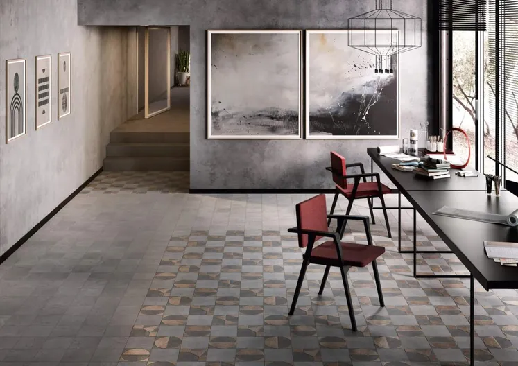 Серия, вдохновленная эстетикой камня и работами миланского архитектора и дизайнера Джо Понти, сделает интерьер по-настоящему актуальным благодаря разнообразию декоров. Для каждого цвета фона предусмотрены пять различных декоров, выполненных в натуральных оттенках и украшенных металлизированным составом. Три дополнительных элемента — два орнаментальных и один геометрический — подойдут к любому цвету базовой плитки. Набор простых, но стильных геометрических декоров с блестящими рельефными линиями желтого или розового цвета станет современным украшением композиции.