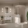 Фоновая настенная плитка 15×40 см доступна в двух цветах: бежевом и сером, и в двух исполнениях — гладком, а также на структуре с аккуратной рамкой. Лёгкость и воздушность декоративным орнаментам придаёт обработка особыми составами. Рисунок декоров окантован объёмной перламутровой гранилью и украшен зеркальным переливающимся материалом. Аналогичный эффект заметен и в нарезной мозаике: она решена с естественными переходами тона, отлично оживляющими керамическую композицию.