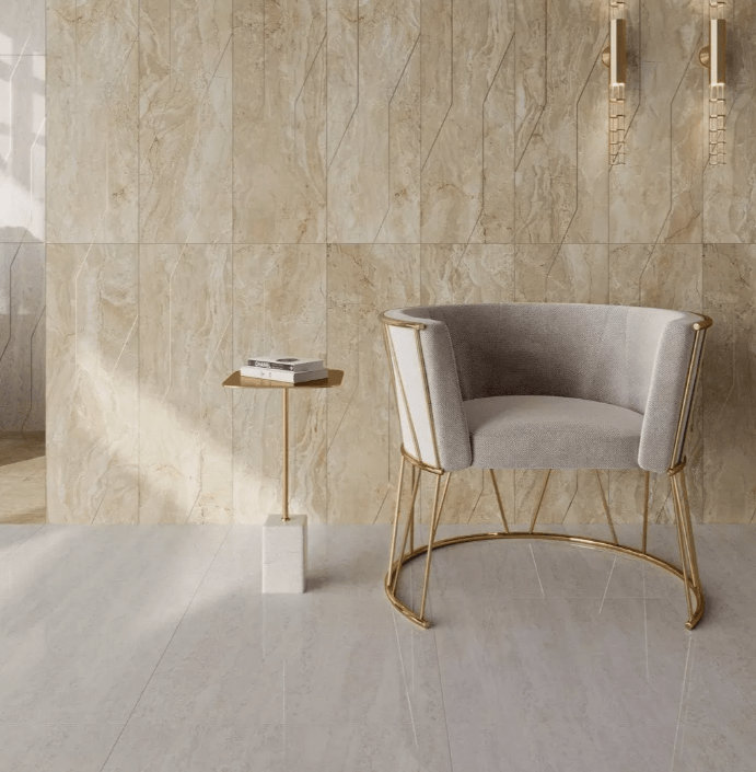 Глянцевая плитка и керамогранит под мрамор без декора будут уместны и в современных интерьерах, и в стиле европейского минимализма, в котором предпочтительно использование дорогих благородных материалов или их современных воспроизведений. В серии представлены декоративные элементы, в которых текстура мрамора дополнена геометрическим золотым орнаментом. Классический орнаментальный декор воспроизводит мраморную инкрустацию с глянцевой поверхностью, контуры-желобки заполнены эффектным блестящим составом.