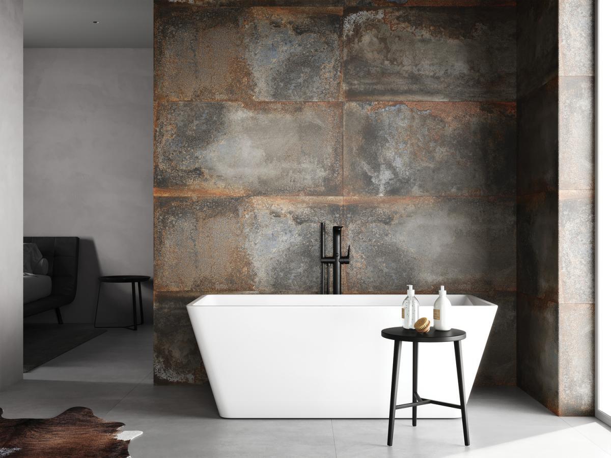 Дизайнеры обыграли тему сочетания камня и металла в коллекции Rustico. Керамогранит с текстурой металла, слегка задетого коррозией, под другим углом можно увидеть и как имитацию камня со следами времени. На самом же деле такая плитка помогает создать стильные, нетривиальные интерьеры с уникальным урбанистичным характером и смелым духом. Глубину рисунку придаёт карвинг.