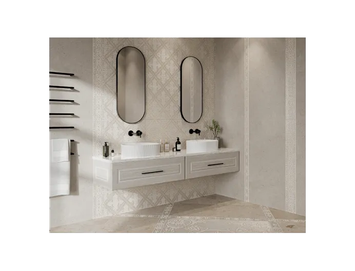 Серия «Карму» демонстрирует разнообразие традиционной каменной и керамической отделки Португалии: мозаику, шестиугольники, необычные рельефные декоры, матовую керамическую плитку. Благодаря скромному очарованию известняка, в частности, его разновидности лаймстоун, воспроизводящая его светлая базовая плитка и плитка с мотивами исторических дизайнов изящно впишется в отделку современных интерьеров и в стиль неоклассика. Сочетая древние рисунки с новыми форматами, серия станет открытием для приверженцев шебби-шика и винтажа. Плюс некоторые дизайны по своей сути близки к средиземноморскому стилю.