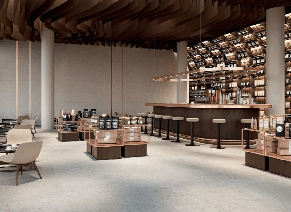 Часть керамических материалов выполнена в формате 60×60: здесь также представлены классические узоры и декоративный элемент, геометрический рисунок которого получен из нескольких цветовых вариаций лаймстоуна с помощью гидроабразивной резки. В этом можно увидеть перекличку с историей данного камня, свойства которого позволяли мастерам покрывать его искусной резьбой и использовать в составе наборных элементов.
