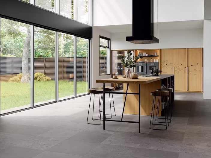 Известняк, ранее широко применявшийся при строительстве, стал источником вдохновения для настенной плитки «Карму» и этой стильной серии керамического гранита с большим выбором форматов и декоративных эффектов.
