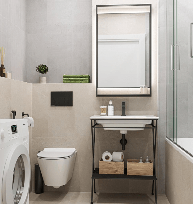 Решения для стены представлены в трех цветах, наиболее популярных для использования в проектах. Это белый, светло-серый и бежевый. В этих цветах выполнена базовая плитка 30×60 с эстетикой камня, а также декоры, где помимо фонового рисунка есть стильный геометрический паттерн. Чтобы сделать линейку настенных материалов более законченной, в неё включены бордюры 30×2,5, плинтус 30×12, в также плитка с выполненной преднарезкой: она делит формат 30×60 на пять частей размером 6×60 см. Это позволяет получить на стене эффект крупной мозаики, укладка которой не требует дополнительных затрат.
