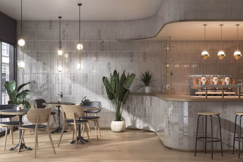 В серии представлена широкая палитра оттенков керамического кирпича: подобрать нужный тон для обстановки не составит труда. Плитка покрыта слоем блестящей глазури, что придает поверхности сходство с рукотворной майоликой. Сделать выкладку еще более интересной позволят декоры. Их выбор также разнообразен: здесь и стилистика акварельных эскизов, и тона ясного неба, и природные пейзажи.