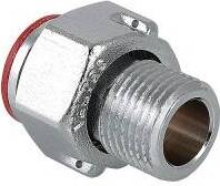Латунный никелированный фитинг. Основное назначение – подключение водосчетчиков. Обеспечивает наличие прямых участков длиной в три условных диаметра до и после расходомера, необходимых для его точной работы. Накидная гайка имеет отверстие для пломбировки. Резьба со стороны без гайки: наружная, трубная цилиндрическая по ГОСТу 6357 (ISO 228, EN 10226).