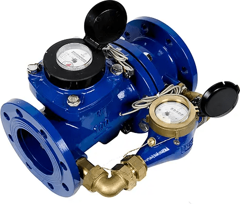 Конструктивно в устройстве расположены два счетчика: турбинный счетчик для больших расходов, многоструйный крыльчатый счетчик для малых расходов. За счет этого достигается возможность точного измерения на объектах с широким диапазоном как малых, так и больших расходов воды